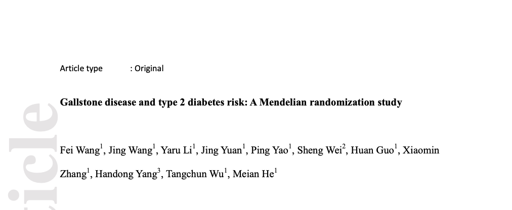 因此,为了明确胆囊结石的存在与 2 型糖尿病的发病是否存在因果关联,有学者进行了相关的研究,我们来看一下具体研究情况。